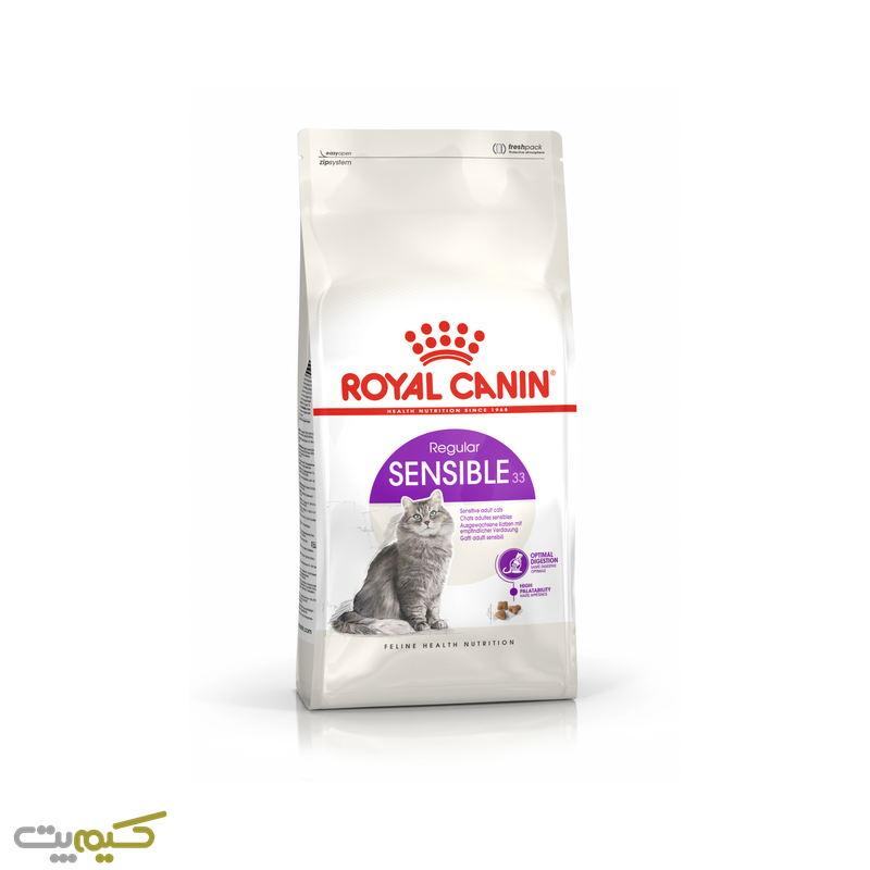 غذای سنسیبل یا Sensible 33 گربه حساس رویال کنین غذایی کامل و مغذی برای گربه های با حساسیت گوارشی است که سن بیش از 1 سال دارند.