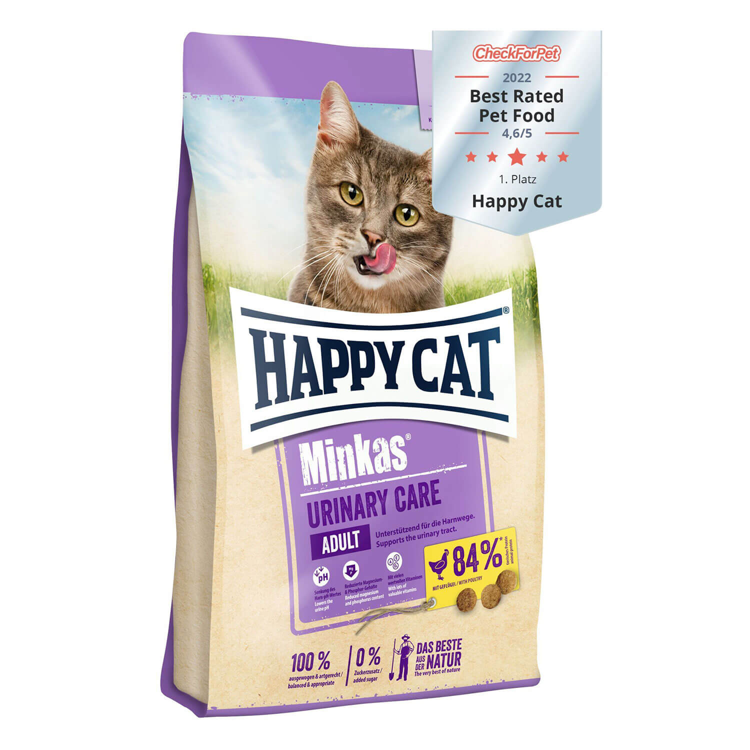 غذای خشک گربه مینکاس یورینری هپی کت (Happy Cat Minkas Urinary Care ) با طعم مرغ یک غذای کامل ملایم و متعادل برای گربه های بالغ است. پروتئین با کیفیت بالا و به راحتی قابل هضم و کاهش سطح منیزیم و فسفر می تواند pH ادرار را کاهش دهد و بنابراین به طور پیشگیرانه دستگاه ادراری را تسکین می دهد.